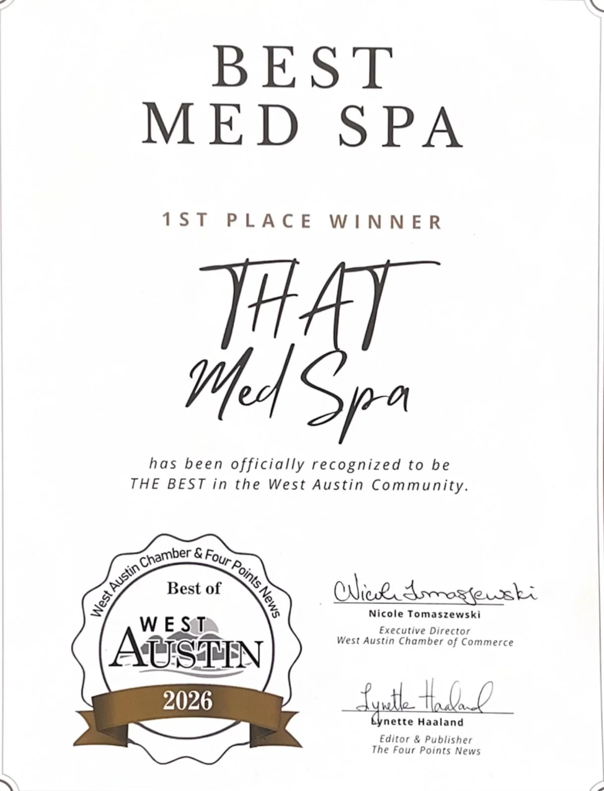 We're the creators behind THAT Med Spa. With over 10 years of experience in top-rated med spas, we've seen it all. We've helped countless folks like you heal their skin, feel confident, and save time and money with customized wellness solutions.